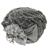 ברט מכווץ פרחים פייטים כסף