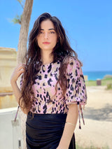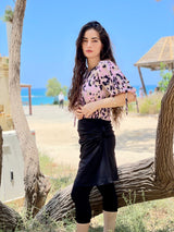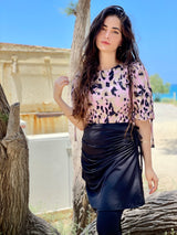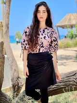 סט בגד ים לגונה חולצה+חצאית טייץ מנומר ורוד