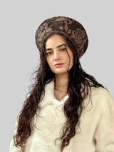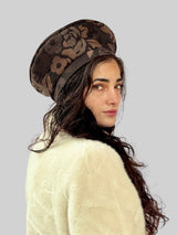 כובע שיק פרחוני חום