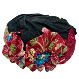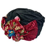 ⁨⁨⁨⁨⁨⁨⁨⁨⁨⁨⁨⁨⁨⁨⁨ברט מכווץ פרחים שחור בורדו רקום