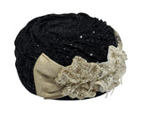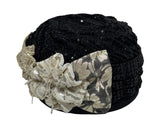 ברט מכווץ פרחים פייטים שחור שמפניה