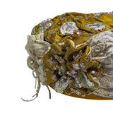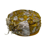 ברט מכווץ רקום פרחים חרדל זהב